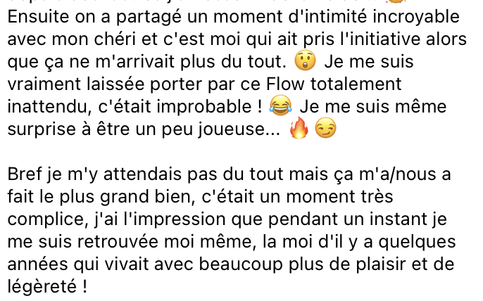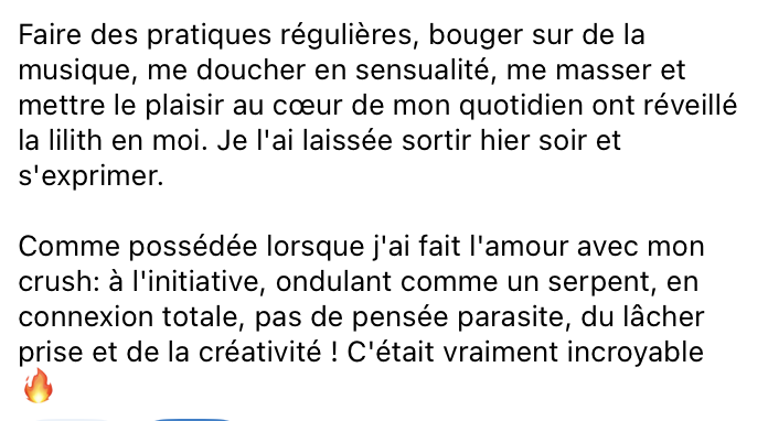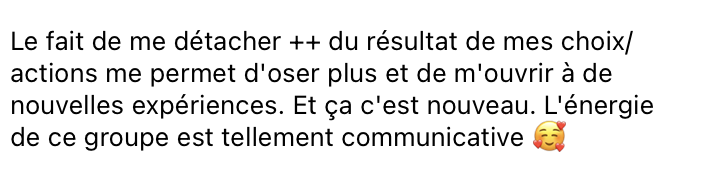 En quelques semaines seulement, j’ai vu une transformation dingue, autant dans ma vie personnelle que relationnelle. Je ne regrette pas une seule seconde d’avoir investi dans ce voyage avec elle. C’est tellement juste que tu ne peux plus revenir en arrière. Oui, il faut être prête à se mettre à nu… mais pour le meilleur.