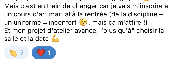 Dans mon travail : j’ai lâché la pression de la performance. Je suis manager, mais je ne sacrifie plus toute mon énergie à un poste qui n’est pas ma passion. Je suis plus légitime dans mes compétences, j’ose lever le pied, et j’ai même décidé de passer à 80 % à partir de juin 2025. Ce choix a transformé mon rapport au travail, à mon temps, et à mon énergie.